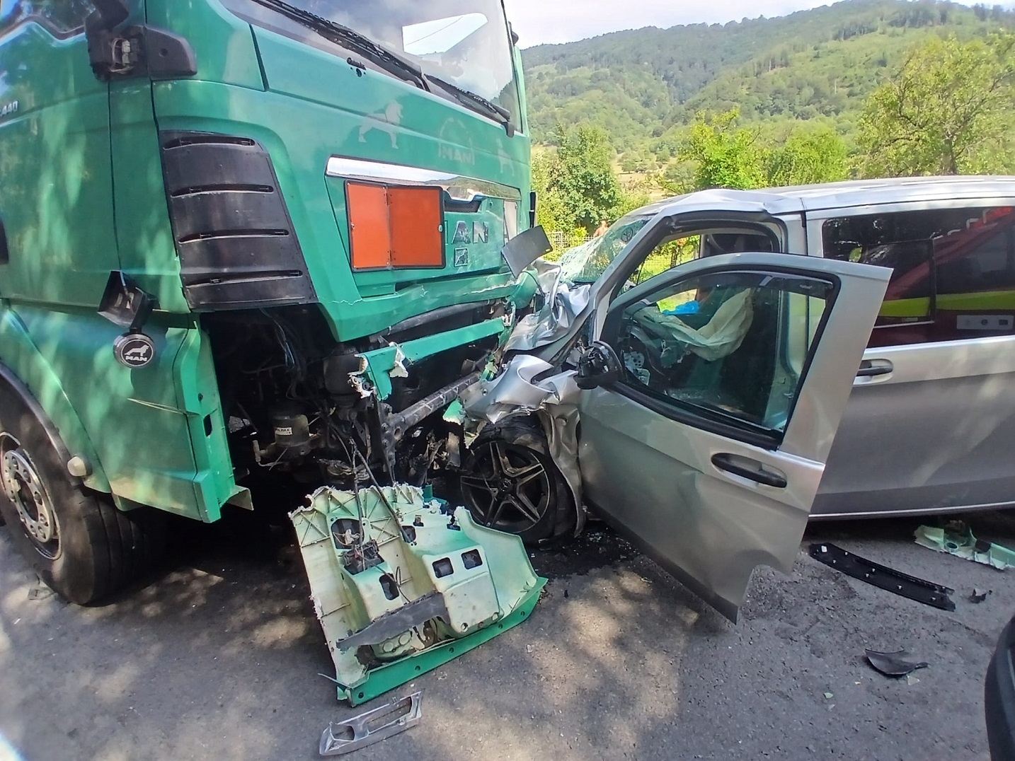Un grav accident rutier s-a produs marți, 8 iulie, pe Drumul Național 7 – Valea Oltului, între localitățile Racovița și Balota, județul Vâlcea. O dubă cu volan pe dreapta, înmatriculată în Marea Britanie, a intrat în coliziune frontală cu un TIR. Impactul a fost devastator. Echipaje ale ISU Vâlcea și ambulanțe SAJ au intervenit rapid la fața locului. Șoferul autoutilitarei, un bărbat de 53 de ani, a fost găsit încarcerat și inconștient. Deși a fost extras de urgență dintre fiarele contorsionate, medicii nu au mai putut face nimic pentru a-i salva viața.