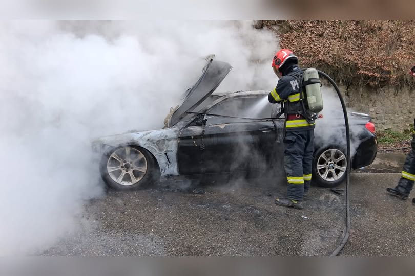 Un autoturism a ars complet astăzi, în cartierul Goranu din Râmnicu Vâlcea. Pompierii au intervenit de urgență pentru stingerea incendiului.