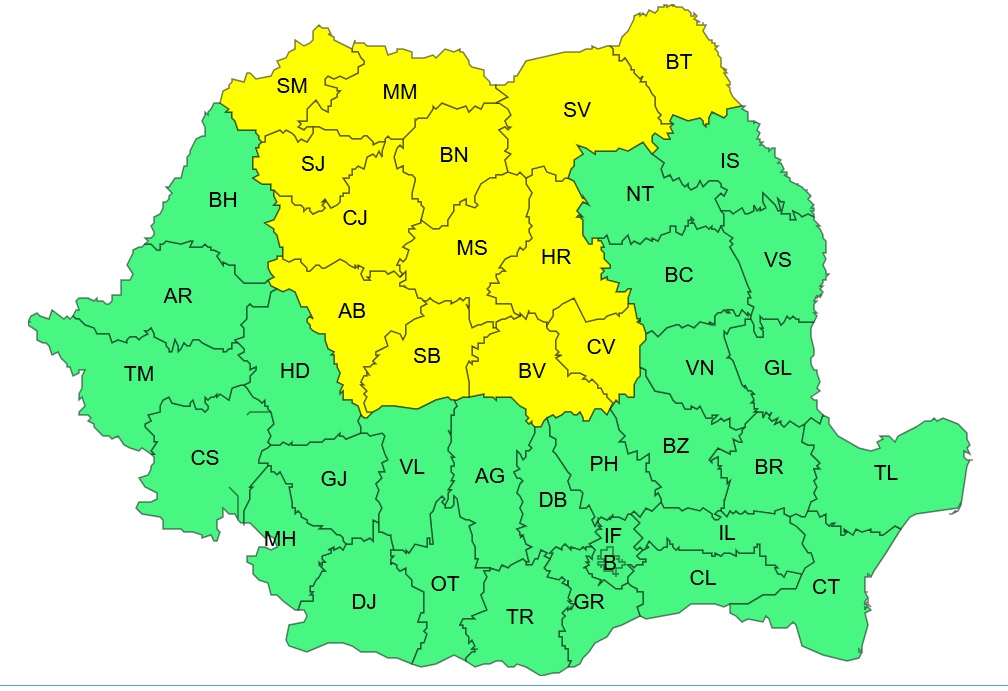 Cod galben de ger în mare parte din țară