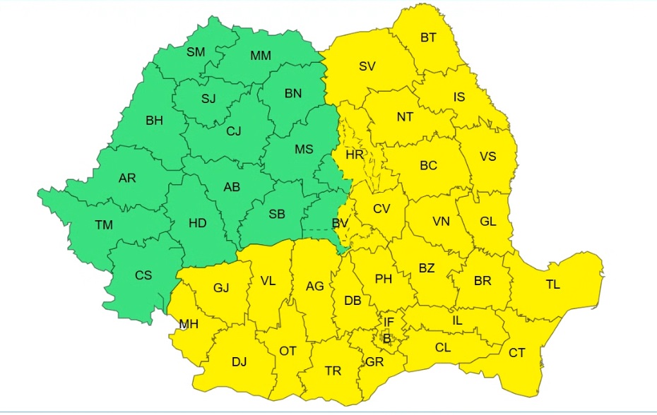 Cod galben de ger puternic în toată țara